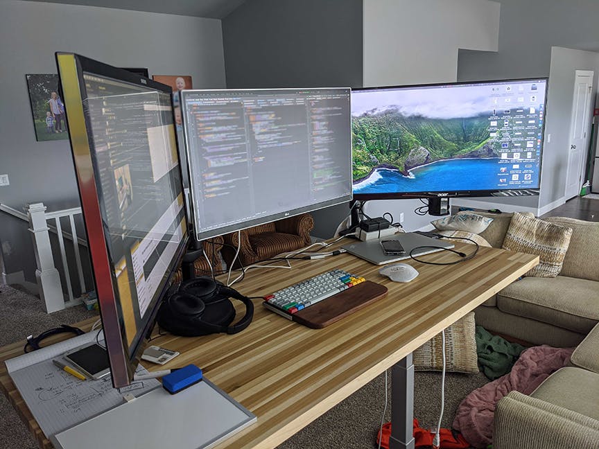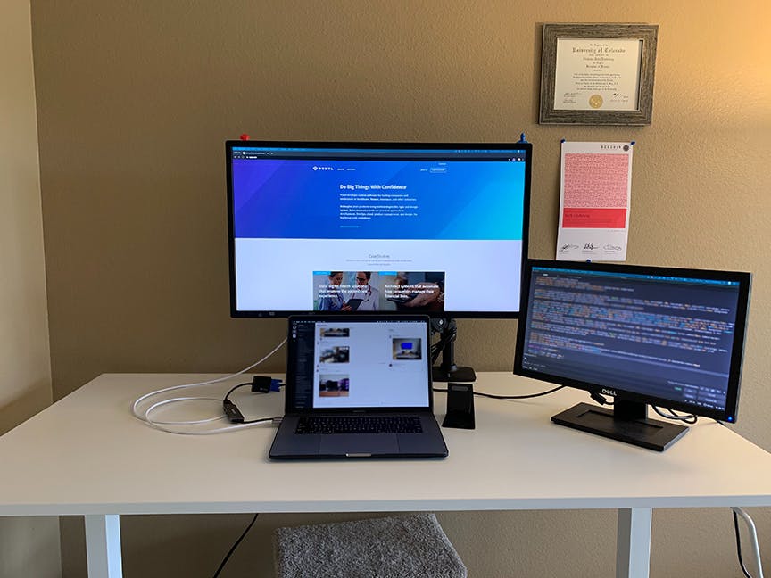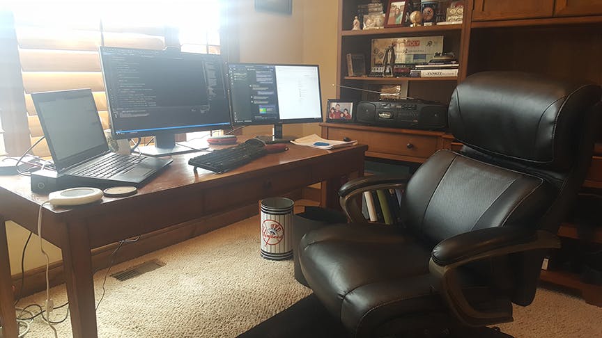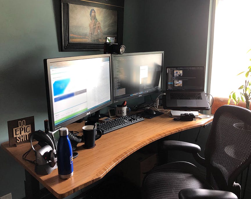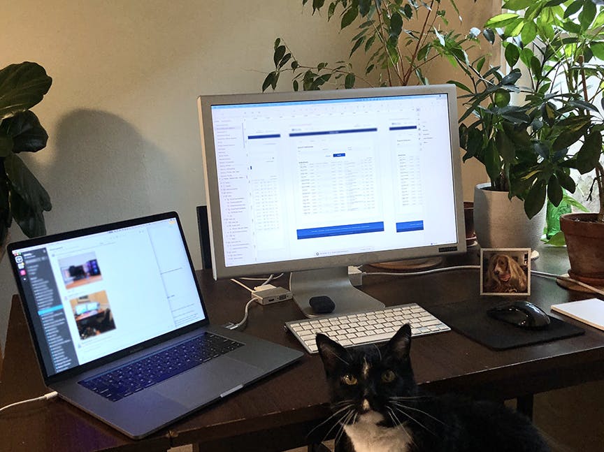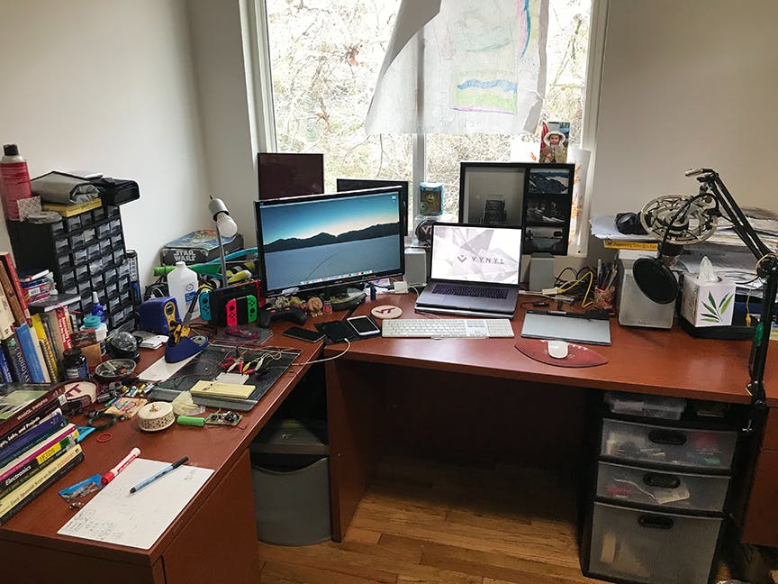 The team at Vynyl has always been distributed in multiple locations. So when stay-at-home orders closed our offices, we were already experienced working with remote teams. Now that all of our engineers, producers, and designers are working in their home offices, we thought we’d share a few of their workspaces. Like our colleagues themselves, these workspaces show the range of personalities and styles that make our team so great to work with.